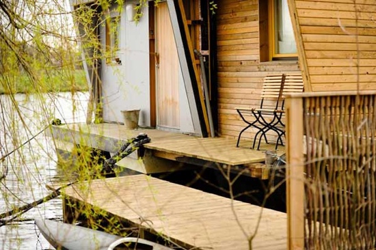 มีบ้านบนน้ำอีกหลังทีดูสวยงาม สร้างจากไม้ทั้งหลัง ออกแบบให้ลอยอยู่ในน้ำก็เหมือนกับเรือนแพบ้านเรานี่ล่ะ แต่ออกแบบทันสมัยดูสวยงาม